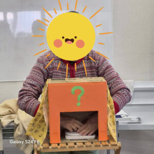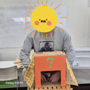 箱に手を入れてもらい手で触った感触だけで何か当ててもらうゲームです🎶