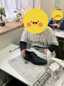 合皮の扱い方や日常の靴のお手入れの方法などを学び、